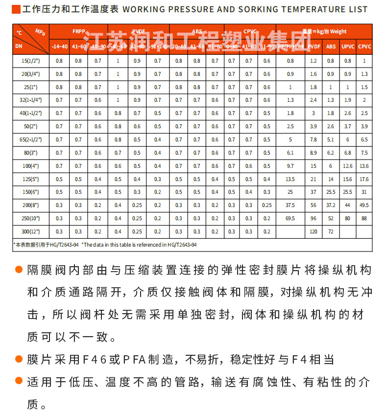 江苏金年会工程塑业有限公司主要生产工程化工FRPP管材、PPH管材、PVDF管材防腐管阀件,三通、弯头、法兰、直接、垫环、盲板、钢塑法兰、内丝外丝、管帽以及化工喷淋塔、洗涤塔、废气处理等设备。阀门类:法兰隔膜阀、法兰球阀、手柄蝶阀、涡轮蝶阀、双由令球阀、法兰截止阀、法兰底阀、升降式止回阀、旋启式止回阀、热熔止回阀、板式止回阀、呼吸阀、氟胶蝶阀、玻璃视镜、Y型过滤器、活接、液面计、四通视镜、阻火器、安全阀、背压阀等 咨询电话:17749553660