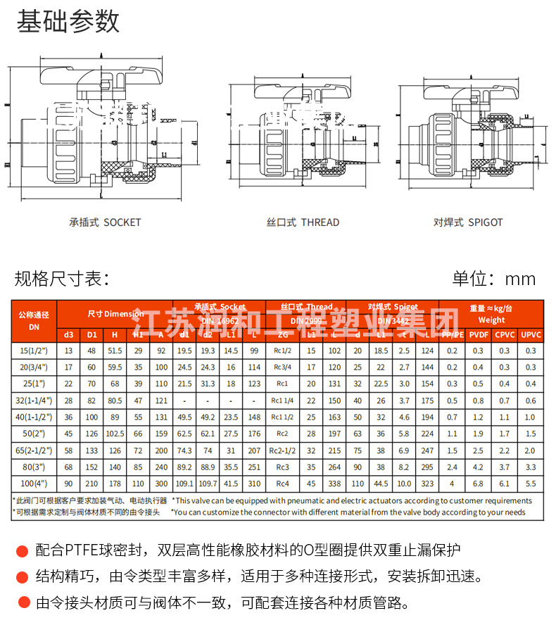 PVDF热熔双由令球阀-Q41F-10S-聚偏二氟乙烯