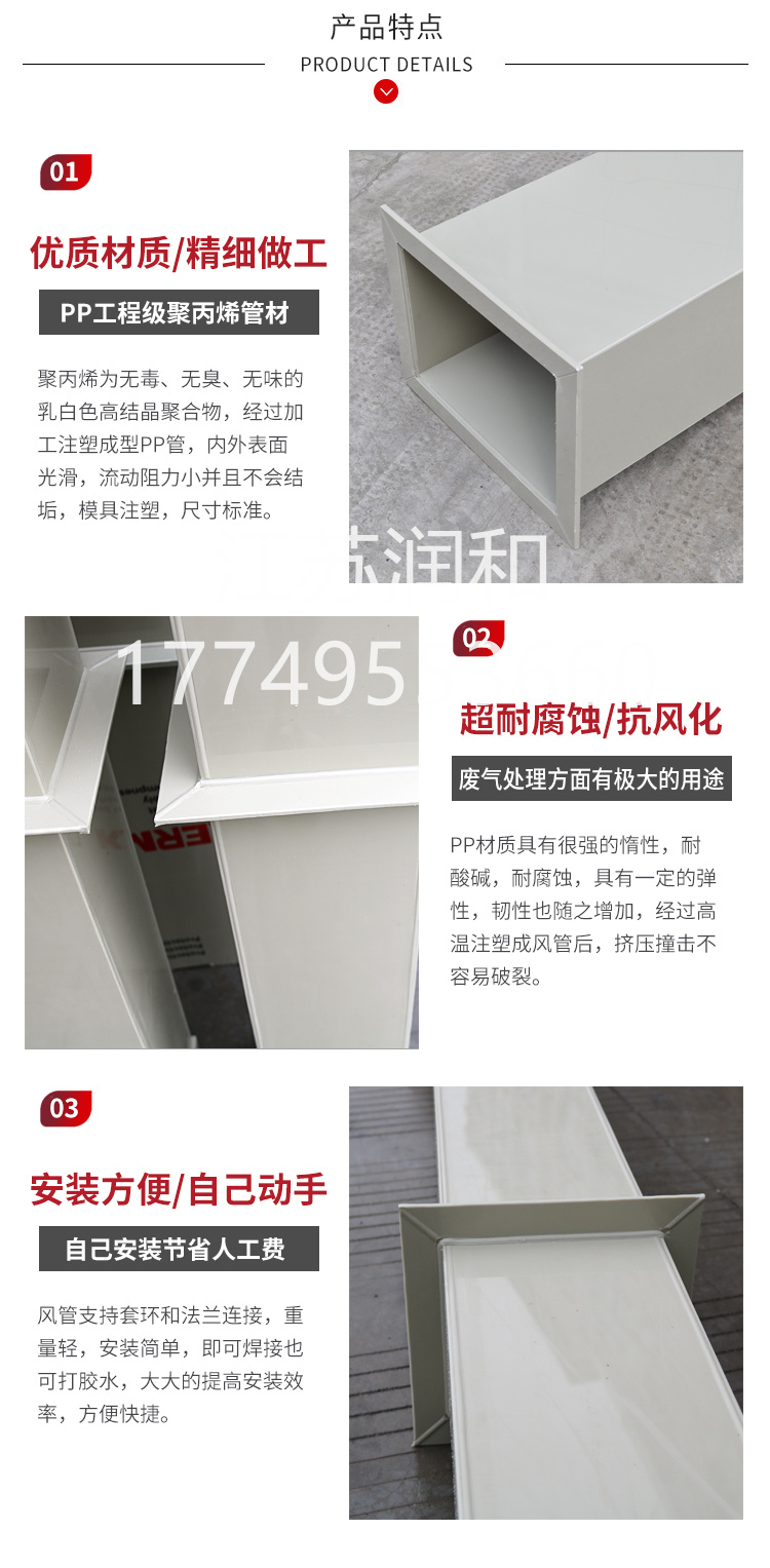 PPH方形风管通风风管承插焊接DN15-DN2000