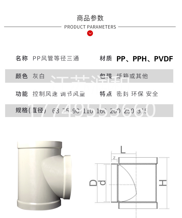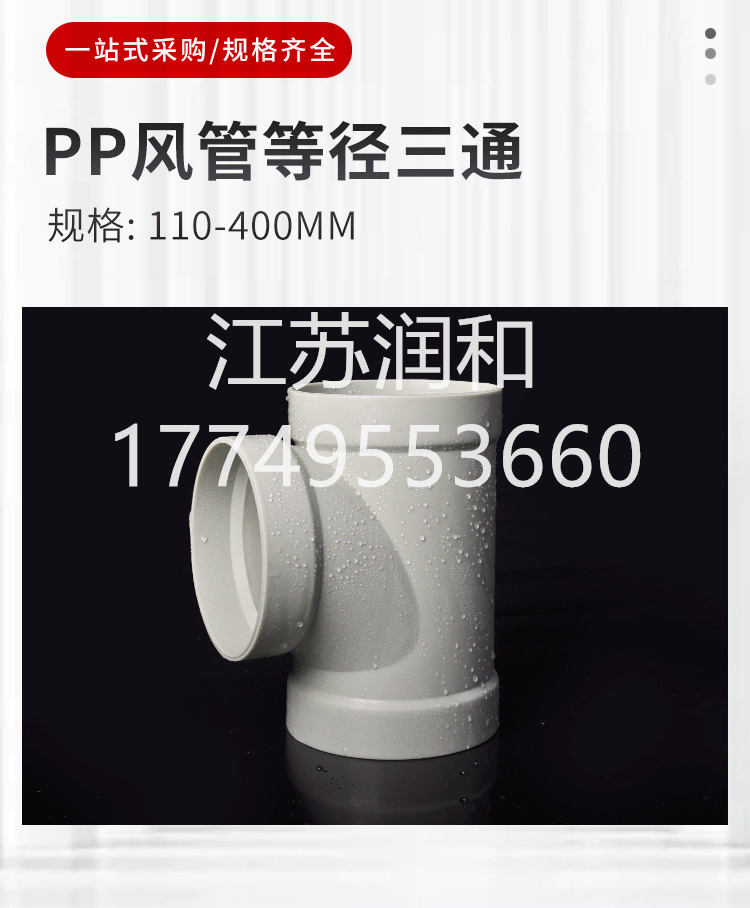 PPH承插三通风管承插焊接DN15-DN2000