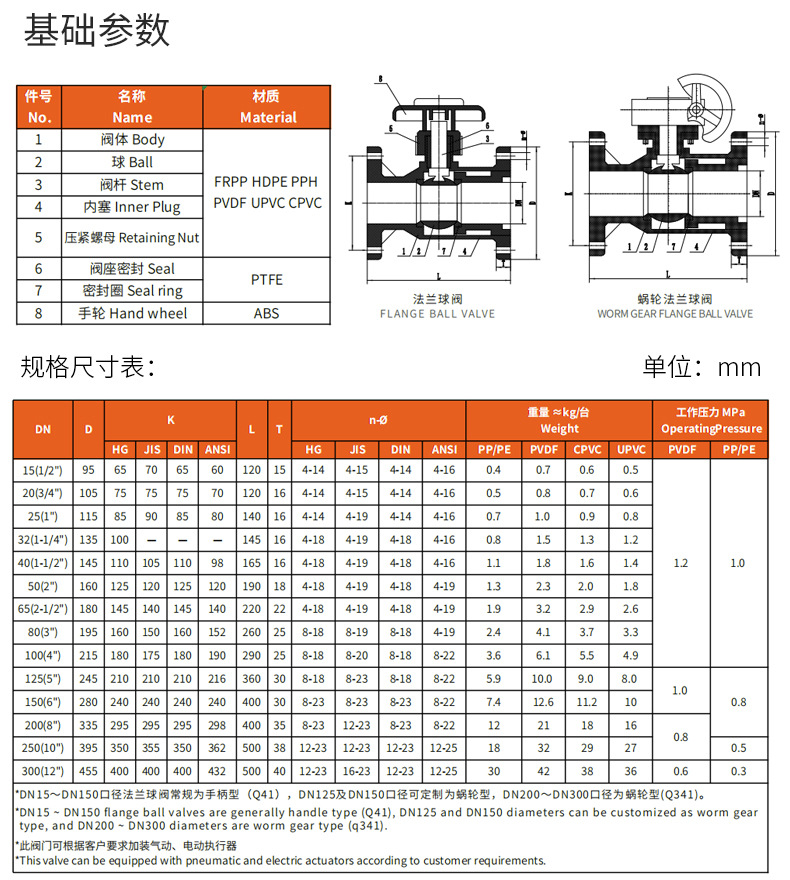 PPH法兰球阀Q41F-10S均聚聚丙烯