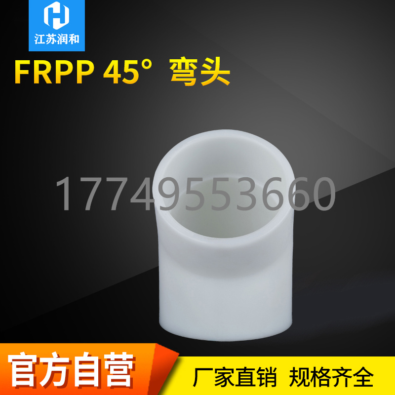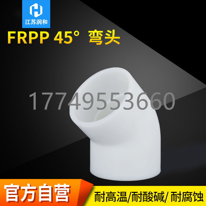 江苏金年会工程塑业有限公司生产FRPP45度弯头-分为热熔焊接 对焊焊接 承插焊接 均聚聚丙烯 主要生产工程化工FRPP管材、PPH管材、PVDF管材防腐管阀件,三通、弯头、法兰、直接、垫环、盲板、钢塑法兰、内丝外丝、管帽以及化工喷淋塔、洗涤塔、废气处理等设备。阀门类:法兰隔膜阀、法兰球阀、手柄蝶阀、涡轮蝶阀、双由令球阀、法兰截止阀、法兰底阀、升降式止回阀、旋启式止回阀、热熔止回阀、板式止回阀、呼吸阀、氟胶蝶阀、玻璃视镜、Y型过滤器、活接、液面计、四通视镜、阻火器、安全阀、背压阀等 咨询电话:17749553660