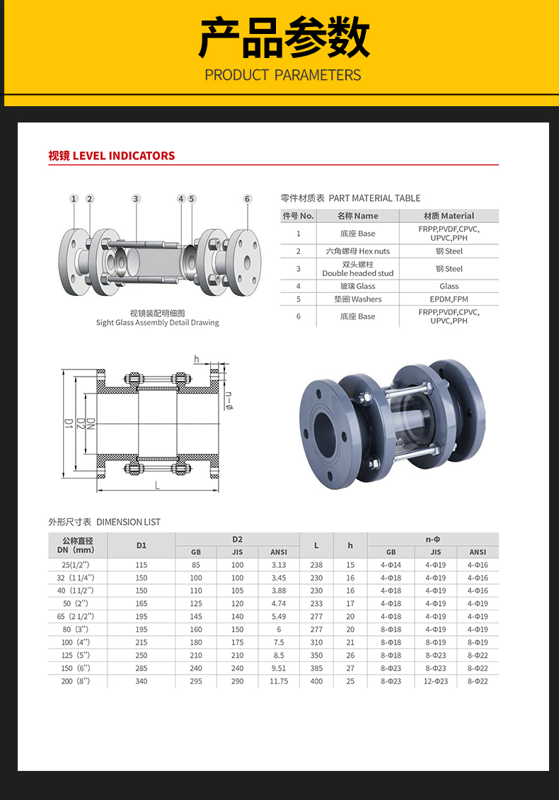 江苏金年会工程塑业有限公司生产FRPP玻璃视镜主要生产工程化工FRPP管材、PPH管材、PVDF管材防腐管阀件,三通、弯头、法兰、直接、垫环、盲板、钢塑法兰、内丝外丝、管帽以及化工喷淋塔、洗涤塔、废气处理等设备。阀门类:法兰隔膜阀、法兰球阀、手柄蝶阀、涡轮蝶阀、双由令球阀、法兰截止阀、法兰底阀、升降式止回阀、旋启式止回阀、热熔止回阀、板式止回阀、呼吸阀、氟胶蝶阀、玻璃视镜、Y型过滤器、活接、液面计、四通视镜、阻火器、安全阀、背压阀等 咨询电话:17749553660