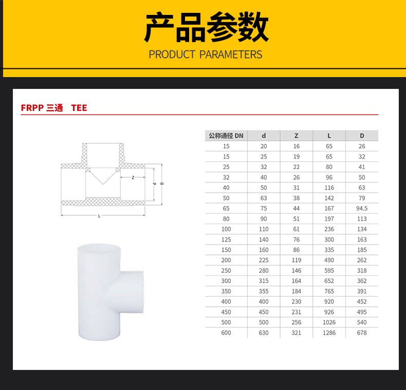 FRPP三通-热熔对焊承插玻纤聚丙烯